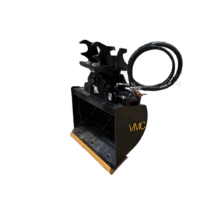VMC Manufactured Tilt Buckets are the solution for grading at an angle. The tilt bucket angles up to 45 degrees to the right or left giving the operator a total of 90 degree working angle. Great for ditches, sidewalks, pools, hardscapes and unlimited other uses. Made in Greenwood SC from USA premium steel.