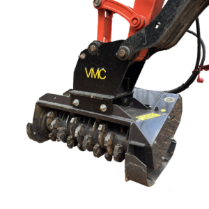 Our VMC Excavator HD and Hybrid models are designed and manufactured for the customers requiring more robust machines and more features than found on our standard cutters. Many customers had needs for heavier work and needed a more finished product as well as the need to cut / mulch grass, weeds, brush, limbs and small trees and didn’t want the initial expense of a fixed tooth drum mulcher ($ 30,000 on average) along with very high operating and maintenance cost. VMC therefore developed the Hybrid model. With most late model compact excavators from 4.5 -15 ton, we have a model to suit. Engineered & Manufactured by VMC in Greenwood SC USA.